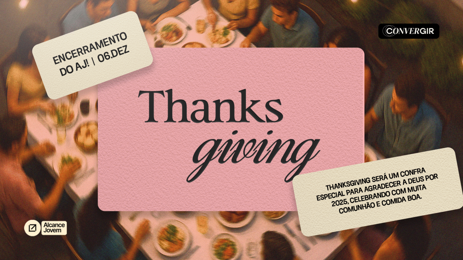 Se inscreva para o encerramento. AJ 2025, onde teremos um thanksgiving, um momento especial para agradecer a Deus, e celebrar com muita comunhão e comida boa.